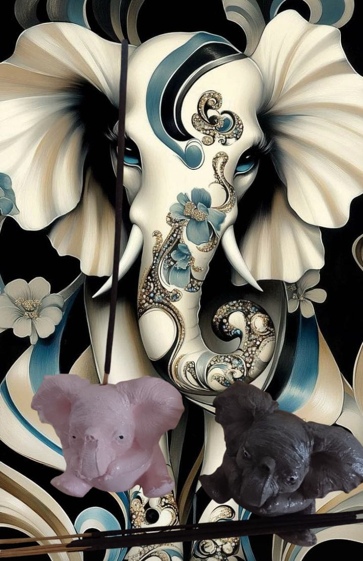 Diseñado en homenaje a la sabiduría y tranquilidad de los elefantes, este portasahumerios esculpido conecta tus rituales de bienestar con un simbolismo espiritual único.